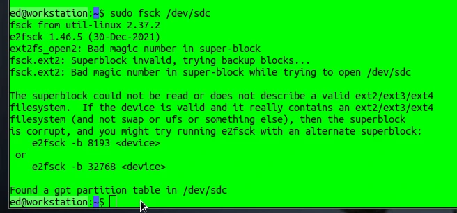 As you can see in the screenshot, some time ago I had a partition with a defective superblock, making it impossible to access the data. The reason for the error was a defective memory cell in the SSD. With a little effort, I was able to access the data and copy it to another storage device. This doesn’t always work. Therefore, I would like to give a little advice: always be well prepared before such rescue operations. This means having a sufficiently large, functioning target drive ready so that you can immediately create a backup if the operation is successful. Many of the operations presented here change the data on the storage device, and it is not certain whether subsequent access will be successful.