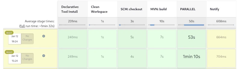 This process has proven highly effective in countless Java projects over the years. However, if you run this process as a pipeline on a CI server like Jenkins, you won’t see much. The individual steps of the build lifecycle are interdependent and cannot be triggered individually. It’s only possible to exit the lifecycle prematurely. For example, after packaging, you can skip the subsequent steps of local deployment and running the integration tests.